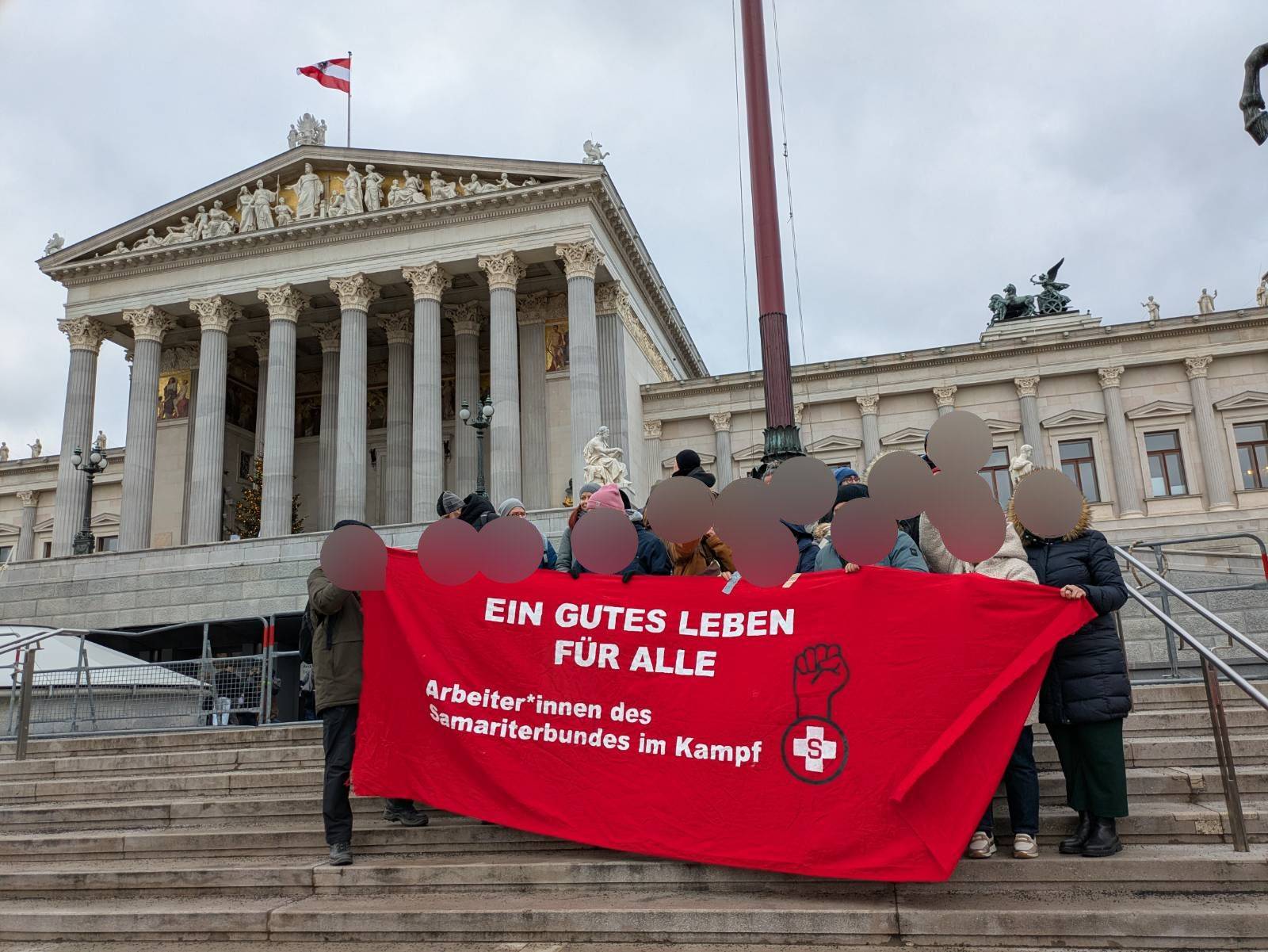 Arbeiter:innen des Samaritabunds Wien bei einer Streikkundgebung